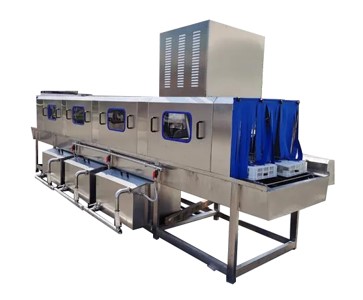 11、性能稳定,操作简便易懂。节能环保。清洗效果优良。适用多种规格周转箱清洗、消毒、烘干。
