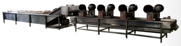 清洗机采用优质SUS304不锈钢材质制作,以水为介质,通过强流涡轮风机形成气泡翻滚,对物料进行柔性清洗。